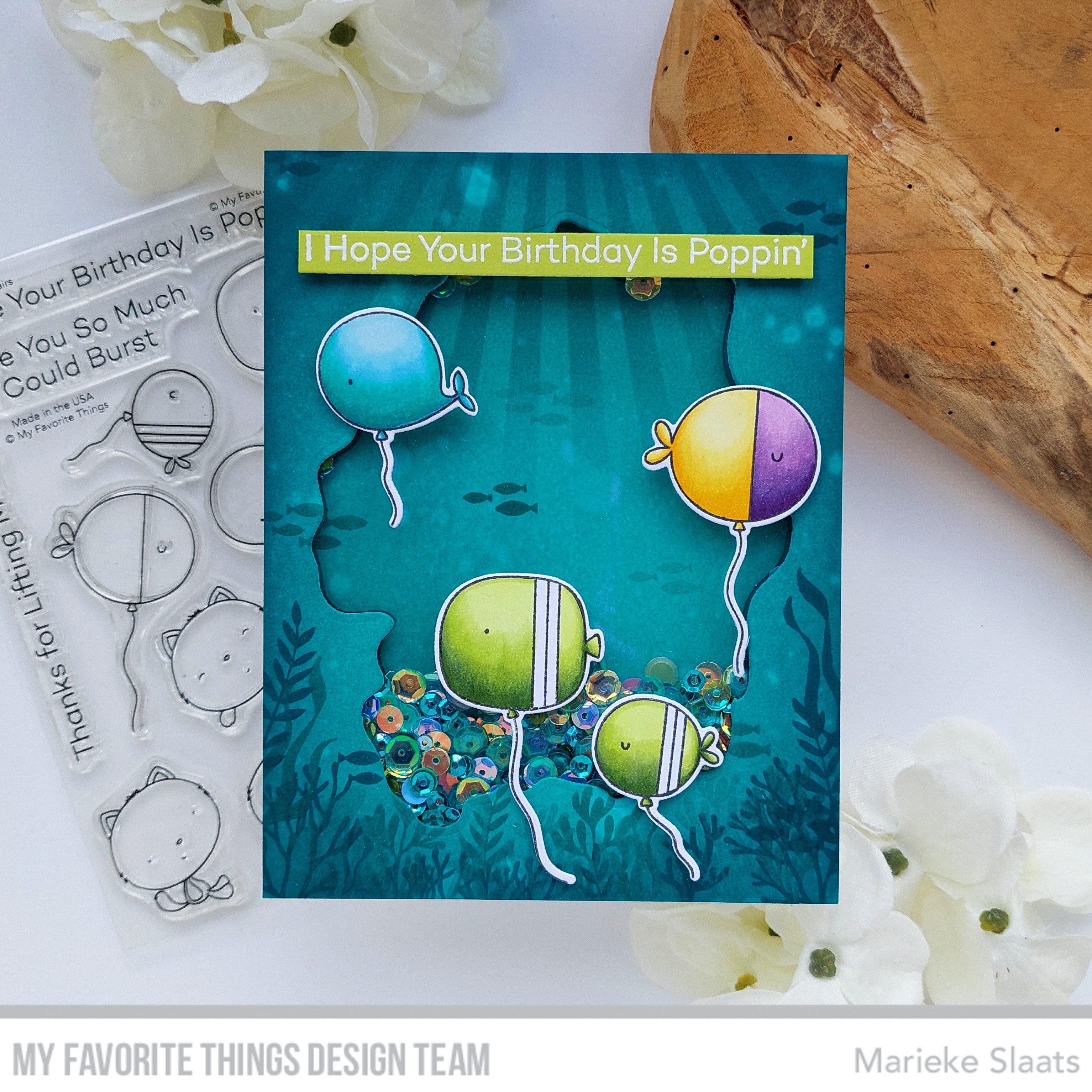 I totally love the set that we are showcasing today, it has cats and fish balloons in a set called Purr-fect Pairs! However for my card I decided on making a shaker card just using the Fish balloons.